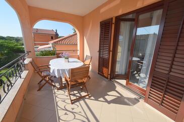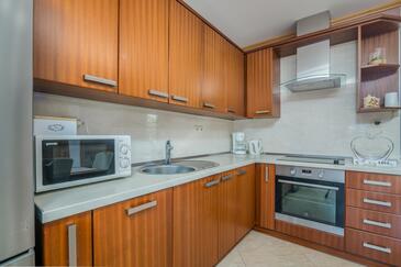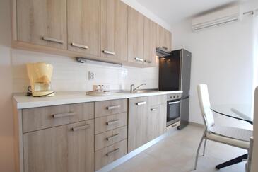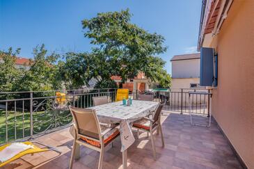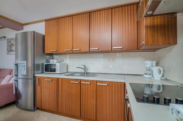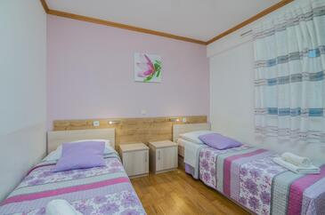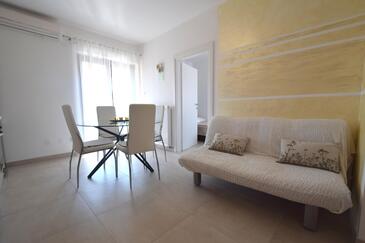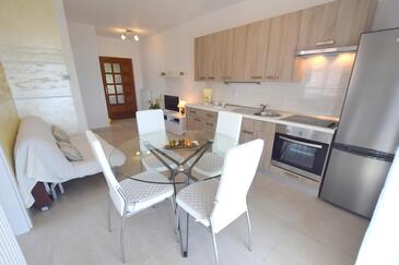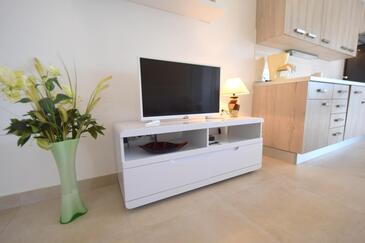 Ferienwohnung bietet Platz für 5 Gäste. Die Betten sind in Schlafzimmern, die es 2 gibt, und in Wohnzimmer, innerhalb einer Gesamtfläche von 45m2, angeordnet. Die Gäste haben eine eigene Terrasse zur Verfügung, auf der sie in warmen Sommernächten genießen können. Es ist erlaubt, Speisen auf dem Gemeinschafts-Grill vorzubereiten.