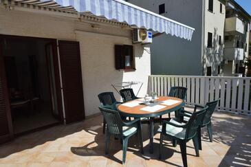 Ferienwohnung bietet Platz für 4 Gäste. Die Betten sind in Schlafzimmern, die es 2 gibt, innerhalb einer Gesamtfläche von 54m2, angeordnet. Die Gäste haben eine eigene Terrasse zur Verfügung, auf der sie in warmen Sommernächten genießen können. Es ist erlaubt, Speisen auf dem Gemeinschafts-Grill vorzubereiten.