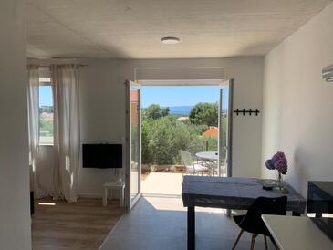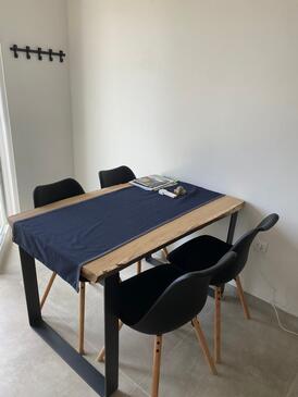 Ferienwohnung bietet Platz für 4 Gäste. Die Betten sind in Schlafzimmern, die es 2 gibt, innerhalb einer Gesamtfläche von 70m2, angeordnet. Die Gäste haben einen eigenen Balkon zur Verfügung, auf der sie in warmen Sommernächten genießen können. Das Apartment bietet Meerblick. Es ist erlaubt, Speisen auf dem Gemeinschafts-Grill vorzubereiten. In der Unterkunftseinheit besteht die Möglichkeit des Mitbringens von Haustieren gegen Aufpreis.
