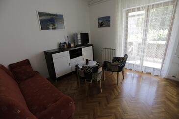 Ferienwohnung bietet Platz für 4 Gäste. Die Betten sind in Schlafzimmern, die es 2 gibt, innerhalb einer Gesamtfläche von 53m2, angeordnet. Die Gäste haben eine eigene Terrasse zur Verfügung, auf der sie in warmen Sommernächten genießen können. In der gebuchten Unterkunftseinheit zahlt man am Ort ein Depositum ( der Preis ist an der Internetseite angeführt ).