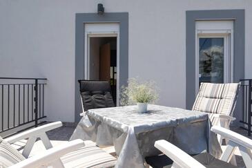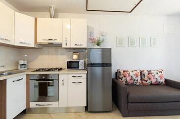 Ferienwohnung bietet Platz für 2 Gäste. Die Betten sind in Schlafzimmern, die es 2 gibt, innerhalb einer Gesamtfläche von 42m2, angeordnet. Die Gäste haben eine eigene Terrasse zur Verfügung, auf der sie in warmen Sommernächten genießen können. Das Apartment bietet Meerblick.