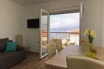 Ferienwohnung bietet Platz für 4 Gäste. Die Betten sind in Schlafzimmern, die es 1 gibt, und in Wohnzimmer, innerhalb einer Gesamtfläche von 28m2, angeordnet. Die Gäste haben einen eigenen Balkon zur Verfügung, auf der sie in warmen Sommernächten genießen können. Das Apartment bietet Meerblick. Es ist erlaubt, Speisen auf dem Gemeinschafts-Grill vorzubereiten.