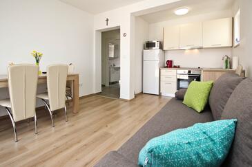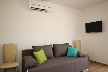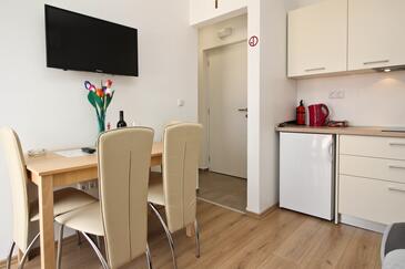 Ferienwohnung bietet Platz für 4 Gäste. Die Betten sind in Schlafzimmern, die es 1 gibt, und in Wohnzimmer, innerhalb einer Gesamtfläche von 28m2, angeordnet. Die Gäste haben einen eigenen Balkon zur Verfügung, auf der sie in warmen Sommernächten genießen können. Das Apartment bietet Meerblick. Es ist erlaubt, Speisen auf dem Gemeinschafts-Grill vorzubereiten.