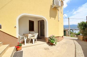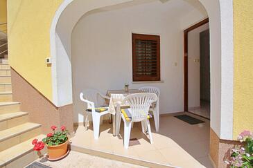 Ferienwohnung bietet Platz für 4 Gäste. Die Betten sind in Schlafzimmern, die es 2 gibt, innerhalb einer Gesamtfläche von 55m2, angeordnet. Die Gäste haben eine eigene Terrasse zur Verfügung, auf der sie in warmen Sommernächten genießen können. Es ist erlaubt, Speisen auf dem Gemeinschafts-Grill vorzubereiten.