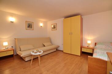 Ferienwohnung bietet Platz für 4 Gäste. Die Betten sind in Schlafzimmern, die es 1 gibt, und in Wohnzimmer, innerhalb einer Gesamtfläche von 47m2, angeordnet. Die Gäste haben eine eigene Terrasse zur Verfügung, auf der sie in warmen Sommernächten genießen können. Es ist erlaubt, Speisen auf dem Gemeinschafts-Grill vorzubereiten.