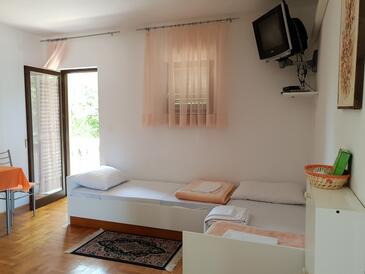 Ferienwohnung bietet Platz für 4 Gäste. Die Betten sind in Schlafzimmern, die es 1 gibt, und in Wohnzimmer, innerhalb einer Gesamtfläche von 38m2, angeordnet. Die Gäste haben einen eigenen Balkon zur Verfügung, auf der sie in warmen Sommernächten genießen können. Es ist erlaubt, Speisen auf dem Gemeinschafts-Grill vorzubereiten. In der Unterkunftseinheit besteht die Möglichkeit des Mitbringens von Haustieren gegen Aufpreis. Die reservierte Unterkunftseinheit verfügt über einen gemeinsame Terrasse.