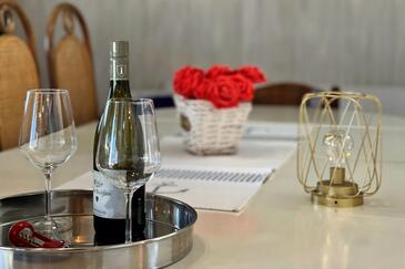 Ferienwohnung bietet Platz für 4 Gäste. Die Betten sind in Schlafzimmern, die es 1 gibt, und in Wohnzimmer, innerhalb einer Gesamtfläche von 44m2, angeordnet. Die Gäste haben eine eigene Terrasse zur Verfügung, auf der sie in warmen Sommernächten genießen können. Für vollen Genuss und Entspannung gibt es einen privaten Grill für Gäste dieser Unterkunft.