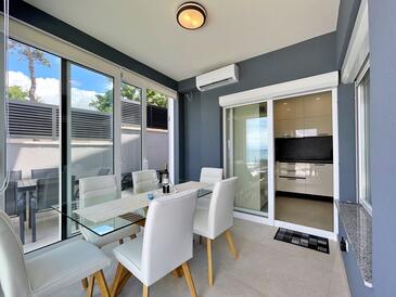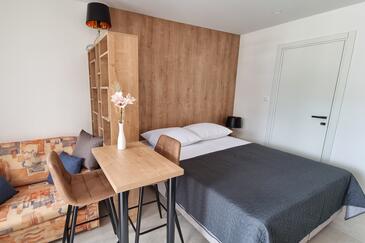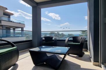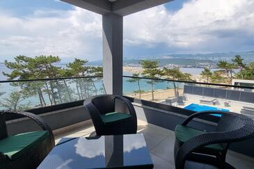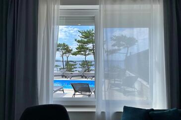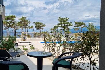 Ferienwohnung bietet Platz für 2 Gäste. Die Betten sind in Schlafzimmern, die es 1 gibt, innerhalb einer Gesamtfläche von 42m2, angeordnet. Die Gäste haben eine eigene Terrasse zur Verfügung, auf der sie in warmen Sommernächten genießen können. Das Apartment bietet Meerblick. Während ihres Aufenthalts können Gäste das gemeinsam zur Nutzung stehende Schwimmbad benutzen.