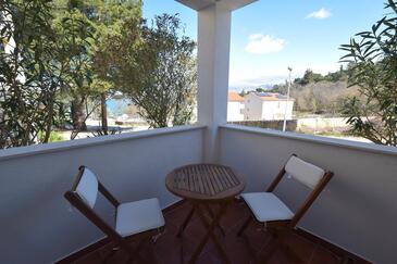 Ferienwohnung bietet Platz für 4 Gäste. Die Betten sind in Schlafzimmern, die es 2 gibt, innerhalb einer Gesamtfläche von 60m2, angeordnet. Die Gäste haben eine eigene Terrasse zur Verfügung, auf der sie in warmen Sommernächten genießen können. Es ist erlaubt, Speisen auf dem Gemeinschafts-Grill vorzubereiten.