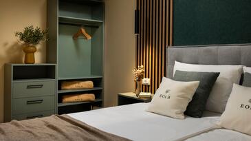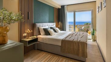 Ferienwohnung bietet Platz für 5 Gäste. Die Betten sind in Schlafzimmern, die es 2 gibt, und in Wohnzimmer, innerhalb einer Gesamtfläche von 64m2, angeordnet. Die Gäste haben eine eigene Terrasse zur Verfügung, auf der sie in warmen Sommernächten genießen können. Das Apartment bietet Meerblick. Während ihres Aufenthalts können Gäste das gemeinsam zur Nutzung stehende Schwimmbad benutzen.