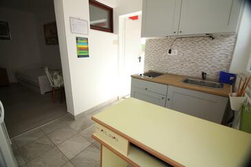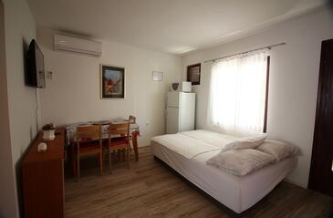 Ferienwohnung bietet Platz für 6 Gäste. Die Betten sind in Schlafzimmern, die es 2 gibt, und in Wohnzimmer, innerhalb einer Gesamtfläche von 40m2, angeordnet. Die Gäste haben eine eigene Terrasse zur Verfügung, auf der sie in warmen Sommernächten genießen können. Es ist erlaubt, Speisen auf dem Gemeinschafts-Grill vorzubereiten. In der Unterkunftseinheit besteht die Möglichkeit des Mitbringens von Haustieren gegen Aufpreis.