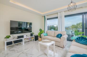 Ferienwohnung bietet Platz für 6 Gäste. Die Betten sind in Schlafzimmern, die es 3 gibt, innerhalb einer Gesamtfläche von 116m2, angeordnet. Die Gäste haben eine eigene Terrasse zur Verfügung, auf der sie in warmen Sommernächten genießen können. Das Apartment bietet Meerblick. Für vollen Genuss und Entspannung gibt es einen privaten Grill für Gäste dieser Unterkunft. Während ihres Aufenthalts können sich Gäste im privaten Schwimmbad entspannen. Räume der gebuchten Unterkunftseinheit werden nicht in eine Ganze verbunden. In der gebuchten Unterkunftseinheit zahlt man am Ort ein Depositum ( der Preis ist an der Internetseite angeführt ).
