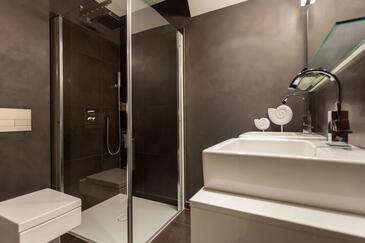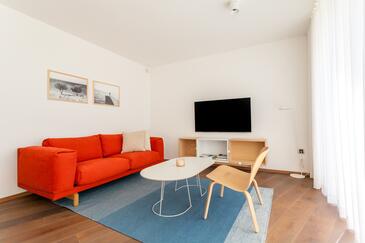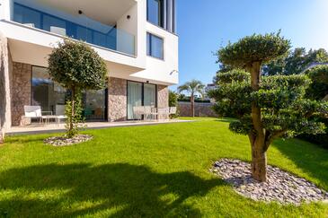 Ferienwohnung bietet Platz für 6 Gäste. Die Betten sind in Schlafzimmern, die es 3 gibt, innerhalb einer Gesamtfläche von 89m2, angeordnet. Die Gäste haben eine eigene Terrasse zur Verfügung, auf der sie in warmen Sommernächten genießen können. In der gebuchten Unterkunftseinheit zahlt man am Ort ein Depositum ( der Preis ist an der Internetseite angeführt ).