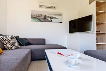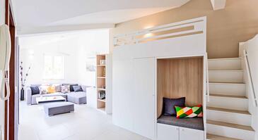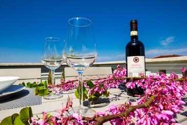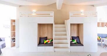 Ferienwohnung bietet Platz für 10 Gäste. Die Betten sind in Schlafzimmern, die es 3 gibt, und in Wohnzimmer, innerhalb einer Gesamtfläche von 93m2, angeordnet. Die Gäste haben eine eigene Terrasse zur Verfügung, auf der sie in warmen Sommernächten genießen können. Das Apartment bietet Meerblick. In der gebuchten Unterkunftseinheit zahlt man am Ort ein Depositum ( der Preis ist an der Internetseite angeführt ).
