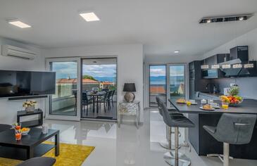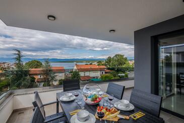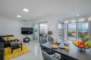 Ferienwohnung bietet Platz für 4 Gäste. Die Betten sind in Schlafzimmern, die es 2 gibt, innerhalb einer Gesamtfläche von 68m2, angeordnet. Die Gäste haben eine eigene Terrasse zur Verfügung, auf der sie in warmen Sommernächten genießen können. Das Apartment bietet Meerblick.