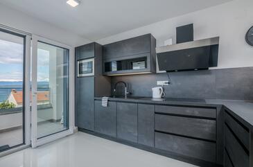 Ferienwohnung bietet Platz für 4 Gäste. Die Betten sind in Schlafzimmern, die es 2 gibt, innerhalb einer Gesamtfläche von 68m2, angeordnet. Die Gäste haben eine eigene Terrasse zur Verfügung, auf der sie in warmen Sommernächten genießen können. Das Apartment bietet Meerblick.