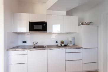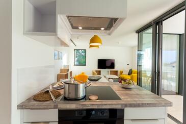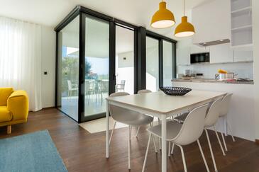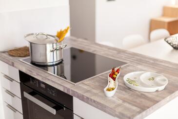 Ferienwohnung bietet Platz für 6 Gäste. Die Betten sind in Schlafzimmern, die es 3 gibt, innerhalb einer Gesamtfläche von 81m2, angeordnet. Die Gäste haben eine eigene Terrasse zur Verfügung, auf der sie in warmen Sommernächten genießen können. In der gebuchten Unterkunftseinheit zahlt man am Ort ein Depositum ( der Preis ist an der Internetseite angeführt ).
