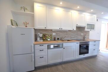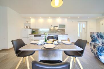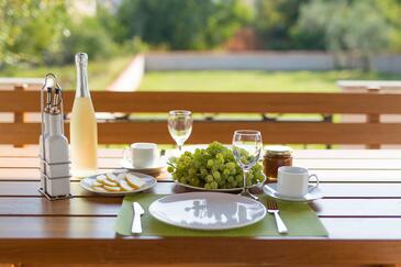 Haus bietet Platz für 5 Gäste. Die Betten sind in Schlafzimmern, die es 2 gibt, und in Wohnzimmer, innerhalb einer Gesamtfläche von 81m2, angeordnet. Die Gäste haben eine eigene Terrasse zur Verfügung, auf der sie in warmen Sommernächten genießen können.