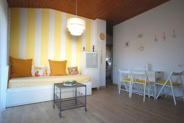 Ferienwohnung bietet Platz für 4 Gäste. Die Betten sind in Schlafzimmern, die es 2 gibt, innerhalb einer Gesamtfläche von 42m2, angeordnet. Die Gäste haben eine eigene Terrasse zur Verfügung, auf der sie in warmen Sommernächten genießen können.