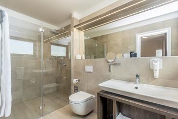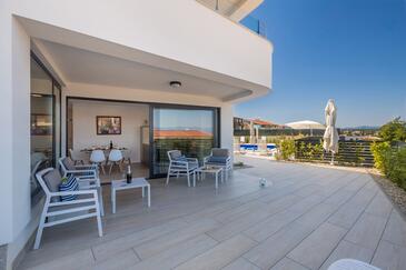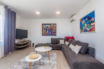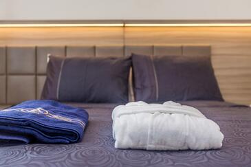 Ferienwohnung bietet Platz für 6 Gäste. Die Betten sind in Schlafzimmern, die es 2 gibt, und in Wohnzimmer, innerhalb einer Gesamtfläche von 75m2, angeordnet. Die Gäste haben eine eigene Terrasse zur Verfügung, auf der sie in warmen Sommernächten genießen können. Es ist erlaubt, Speisen auf dem Gemeinschafts-Grill vorzubereiten. Während ihres Aufenthalts können Gäste das gemeinsam zur Nutzung stehende Schwimmbad benutzen. In der gebuchten Unterkunftseinheit zahlt man am Ort ein Depositum ( der Preis ist an der Internetseite angeführt ).