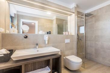 Ferienwohnung bietet Platz für 6 Gäste. Die Betten sind in Schlafzimmern, die es 2 gibt, und in Wohnzimmer, innerhalb einer Gesamtfläche von 75m2, angeordnet. Die Gäste haben eine eigene Terrasse zur Verfügung, auf der sie in warmen Sommernächten genießen können. Es ist erlaubt, Speisen auf dem Gemeinschafts-Grill vorzubereiten. Während ihres Aufenthalts können Gäste das gemeinsam zur Nutzung stehende Schwimmbad benutzen. In der gebuchten Unterkunftseinheit zahlt man am Ort ein Depositum ( der Preis ist an der Internetseite angeführt ).