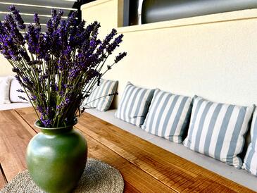 Ferienwohnung bietet Platz für 4 Gäste. Die Betten sind in Schlafzimmern, die es 1 gibt, und in Wohnzimmer, innerhalb einer Gesamtfläche von 35m2, angeordnet. Die Gäste haben eine eigene Terrasse zur Verfügung, auf der sie in warmen Sommernächten genießen können.