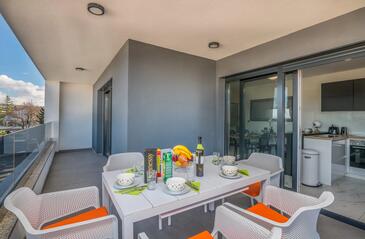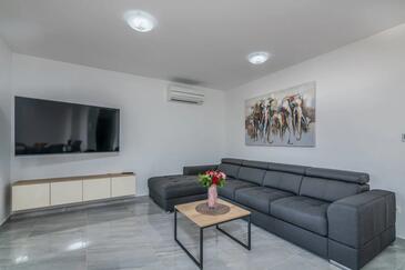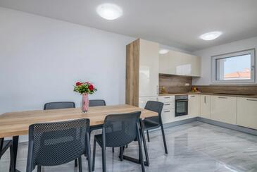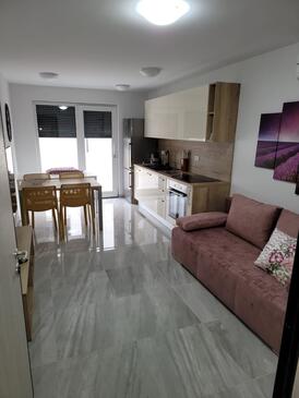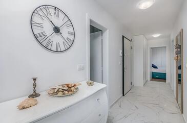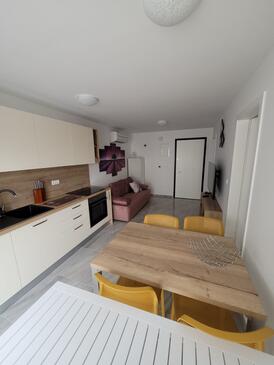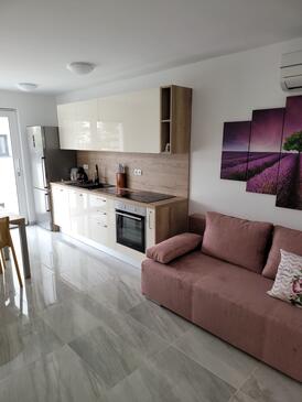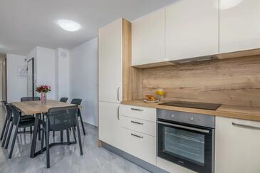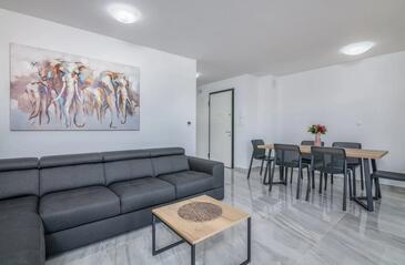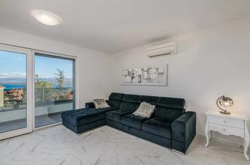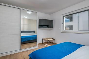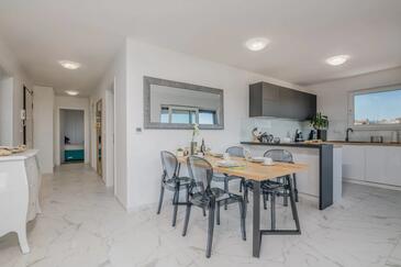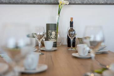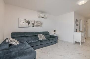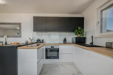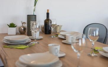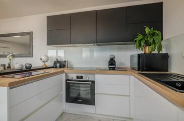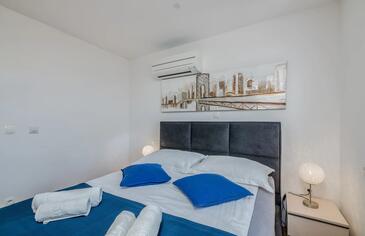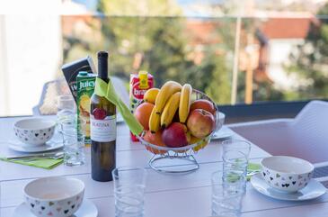 Ferienwohnung bietet Platz für 4 Gäste. Die Betten sind in Schlafzimmern, die es 2 gibt, innerhalb einer Gesamtfläche von 80m2, angeordnet. Die Gäste haben eine eigene Terrasse zur Verfügung, auf der sie in warmen Sommernächten genießen können. Das Apartment bietet Meerblick.