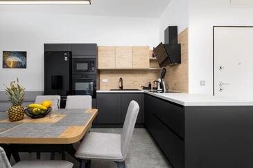 Ferienwohnung bietet Platz für 4 Gäste. Die Betten sind in Schlafzimmern, die es 2 gibt, innerhalb einer Gesamtfläche von 63m2, angeordnet. Die Gäste haben eine eigene Terrasse zur Verfügung, auf der sie in warmen Sommernächten genießen können.