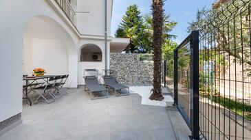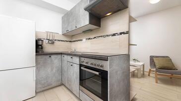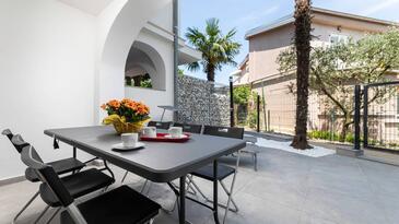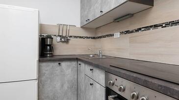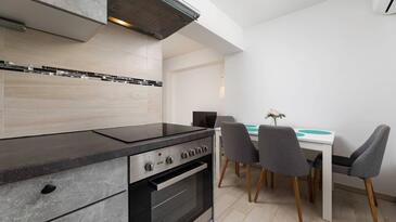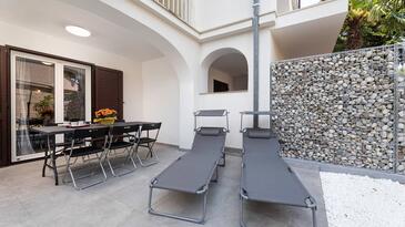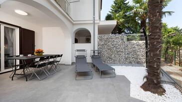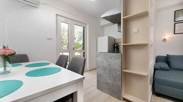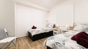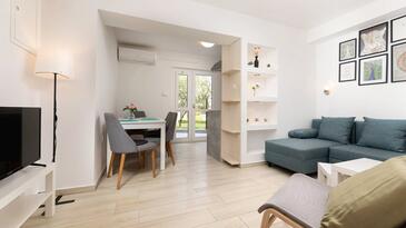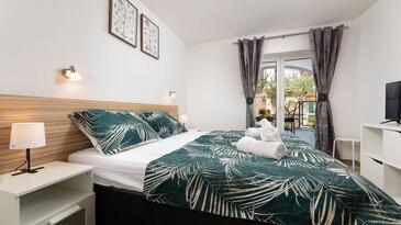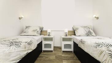 Ferienwohnung bietet Platz für 4 Gäste. Die Betten sind in Schlafzimmern, die es 2 gibt, innerhalb einer Gesamtfläche von 54m2, angeordnet. Die Gäste haben eine eigene Terrasse zur Verfügung, auf der sie in warmen Sommernächten genießen können. Es ist erlaubt, Speisen auf dem Gemeinschafts-Grill vorzubereiten.