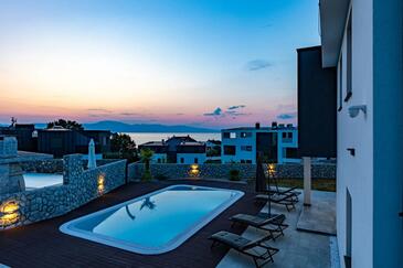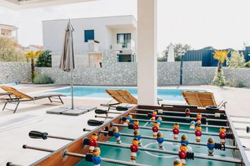 Ferienwohnung bietet Platz für 8 Gäste. Die Betten sind in Schlafzimmern, die es 4 gibt, innerhalb einer Gesamtfläche von 106m2, angeordnet. Die Gäste haben eine eigene Terrasse zur Verfügung, auf der sie in warmen Sommernächten genießen können. Während ihres Aufenthalts können sich Gäste im privaten Schwimmbad entspannen.
