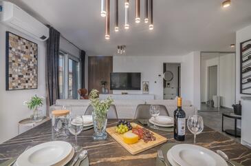 Ferienwohnung bietet Platz für 4 Gäste. Die Betten sind in Schlafzimmern, die es 2 gibt, innerhalb einer Gesamtfläche von 70m2, angeordnet. Die Gäste haben einen eigenen Balkon zur Verfügung, auf der sie in warmen Sommernächten genießen können.