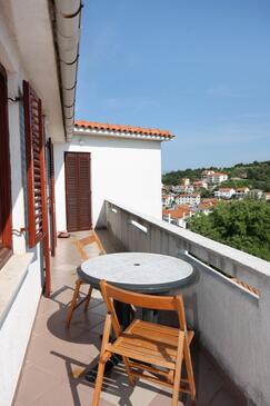 Ferienwohnung bietet Platz für 6 Gäste. Die Betten sind in Schlafzimmern, die es 2 gibt, innerhalb einer Gesamtfläche von 102m2, angeordnet. Die Gäste haben eine eigene Terrasse zur Verfügung, auf der sie in warmen Sommernächten genießen können. Das Apartment bietet Meerblick. Für vollen Genuss und Entspannung gibt es einen privaten Grill für Gäste dieser Unterkunft.