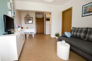 Ferienwohnung bietet Platz für 5 Gäste. Die Betten sind in Schlafzimmern, die es 2 gibt, und in Wohnzimmer, innerhalb einer Gesamtfläche von 44m2, angeordnet. Die Gäste haben eine eigene Terrasse zur Verfügung, auf der sie in warmen Sommernächten genießen können. Das Apartment bietet Meerblick. Für vollen Genuss und Entspannung gibt es einen privaten Grill für Gäste dieser Unterkunft.