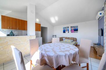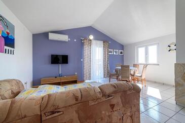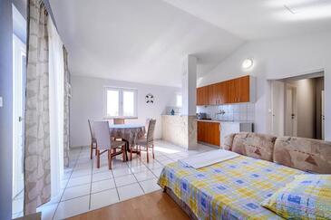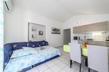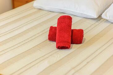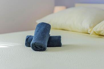 Ferienwohnung bietet Platz für 4 Gäste. Die Betten sind in Schlafzimmern, die es 1 gibt, und in Wohnzimmer, innerhalb einer Gesamtfläche von 45m2, angeordnet. Die Gäste haben einen eigenen Balkon zur Verfügung, auf der sie in warmen Sommernächten genießen können. Das Apartment bietet Meerblick. Es ist erlaubt, Speisen auf dem Gemeinschafts-Grill vorzubereiten.