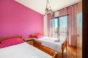 Ferienwohnung bietet Platz für 8 Gäste. Die Betten sind in Schlafzimmern, die es 4 gibt, innerhalb einer Gesamtfläche von 92m2, angeordnet. Die Gäste haben einen eigenen Balkon zur Verfügung, auf der sie in warmen Sommernächten genießen können. Das Apartment bietet Meerblick. Es ist erlaubt, Speisen auf dem Gemeinschafts-Grill vorzubereiten.