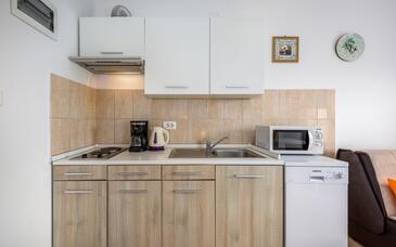 Ferienwohnung bietet Platz für 5 Gäste. Die Betten sind in Schlafzimmern, die es 2 gibt, und in Wohnzimmer, innerhalb einer Gesamtfläche von 49m2, angeordnet. Die Gäste haben einen eigenen Balkon zur Verfügung, auf der sie in warmen Sommernächten genießen können. Das Apartment bietet Meerblick. Es ist erlaubt, Speisen auf dem Gemeinschafts-Grill vorzubereiten. Während ihres Aufenthalts können Gäste das gemeinsam zur Nutzung stehende Schwimmbad benutzen. In der Unterkunftseinheit besteht die Möglichkeit des Mitbringens von Haustieren gegen Aufpreis.