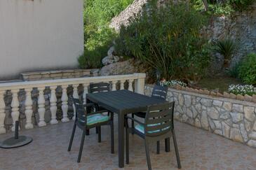 Haus bietet Platz für 5 Gäste. Die Betten sind in Schlafzimmern, die es 2 gibt, und in Wohnzimmer, innerhalb einer Gesamtfläche von 64m2, angeordnet. Die Gäste haben eine eigene Terrasse zur Verfügung, auf der sie in warmen Sommernächten genießen können. Das Haus bietet Meerblick. Es ist erlaubt, Speisen auf dem Gemeinschafts-Grill vorzubereiten.