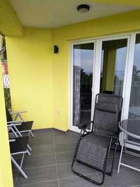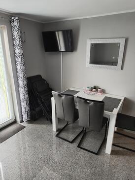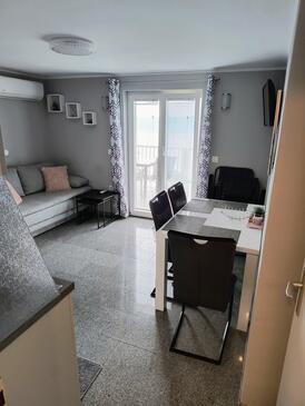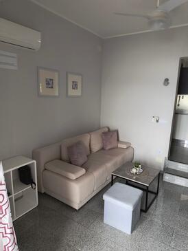 Ferienwohnung bietet Platz für 4 Gäste. Die Betten sind in Schlafzimmern, die es 1 gibt, und in Wohnzimmer, innerhalb einer Gesamtfläche von 34m2, angeordnet. Die Gäste haben eine eigene Terrasse zur Verfügung, auf der sie in warmen Sommernächten genießen können. Das Apartment bietet Meerblick. Es ist erlaubt, Speisen auf dem Gemeinschafts-Grill vorzubereiten.