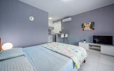 Ferienwohnung bietet Platz für 6 Gäste. Die Betten sind in Schlafzimmern, die es 2 gibt, und in Wohnzimmer, innerhalb einer Gesamtfläche von 46m2, angeordnet. Die Gäste haben eine eigene Terrasse zur Verfügung, auf der sie in warmen Sommernächten genießen können. Das Apartment bietet Meerblick. Es ist erlaubt, Speisen auf dem Gemeinschafts-Grill vorzubereiten. In der Unterkunftseinheit besteht die Möglichkeit des Mitbringens von Haustieren gegen Aufpreis.