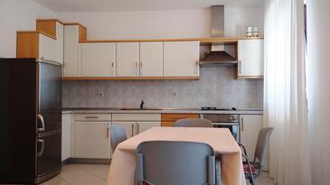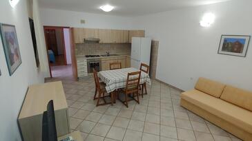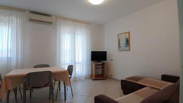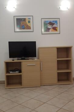 Ferienwohnung bietet Platz für 5 Gäste. Die Betten sind in Schlafzimmern, die es 2 gibt, und in Wohnzimmer, innerhalb einer Gesamtfläche von 57m2, angeordnet. Die Gäste haben eine eigene Terrasse zur Verfügung, auf der sie in warmen Sommernächten genießen können. Es ist erlaubt, Speisen auf dem Gemeinschafts-Grill vorzubereiten. In der Unterkunftseinheit besteht die Möglichkeit des Mitbringens von Haustieren gegen Aufpreis.