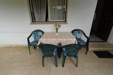 Ferienwohnung bietet Platz für 4 Gäste. Die Betten sind in Schlafzimmern, die es 2 gibt, innerhalb einer Gesamtfläche von 47m2, angeordnet. Die Gäste haben eine eigene Terrasse zur Verfügung, auf der sie in warmen Sommernächten genießen können. Das Apartment bietet Meerblick. Durch die Terrasse der gebuchten Unterkunftseinheit gehen auch andere Gäste oder Vermieter.