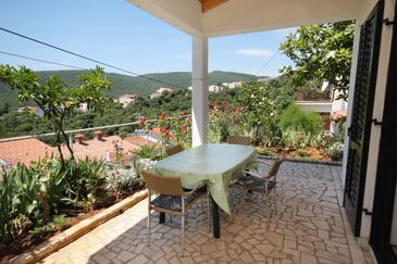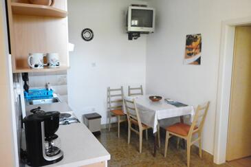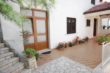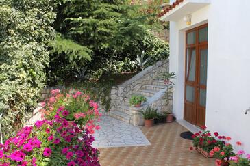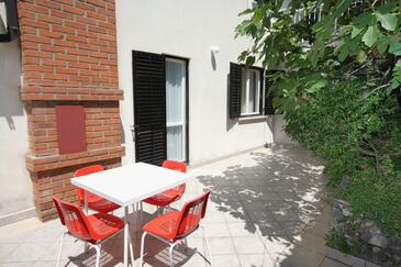 Ferienwohnung bietet Platz für 5 Gäste. Die Betten sind in Schlafzimmern, die es 2 gibt, innerhalb einer Gesamtfläche von 66m2, angeordnet. Die Gäste haben eine eigene Terrasse zur Verfügung, auf der sie in warmen Sommernächten genießen können. Das Apartment bietet Meerblick. Es ist erlaubt, Speisen auf dem Gemeinschafts-Grill vorzubereiten.