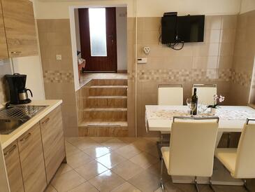 Ferienwohnung bietet Platz für 5 Gäste. Die Betten sind in Schlafzimmern, die es 2 gibt, und in Wohnzimmer, innerhalb einer Gesamtfläche von 35m2, angeordnet. Die Gäste haben eine eigene Terrasse zur Verfügung, auf der sie in warmen Sommernächten genießen können. Das Apartment bietet Meerblick. Es ist erlaubt, Speisen auf dem Gemeinschafts-Grill vorzubereiten.