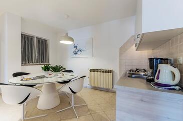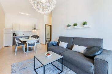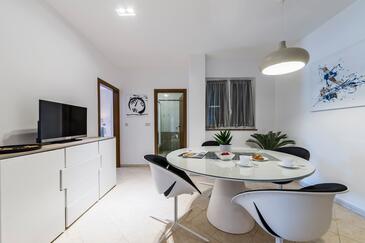 Ferienwohnung bietet Platz für 6 Gäste. Die Betten sind in Schlafzimmern, die es 3 gibt, innerhalb einer Gesamtfläche von 70m2, angeordnet. Die Gäste haben eine eigene Terrasse zur Verfügung, auf der sie in warmen Sommernächten genießen können. Das Apartment bietet Meerblick. Es ist erlaubt, Speisen auf dem Gemeinschafts-Grill vorzubereiten. In der Unterkunftseinheit besteht die Möglichkeit des Mitbringens von Haustieren gegen Aufpreis.