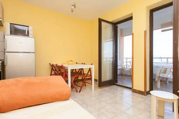 Ferienwohnung bietet Platz für 4 Gäste. Die Betten sind in Schlafzimmern, die es 1 gibt, und in Wohnzimmer, innerhalb einer Gesamtfläche von 26m2, angeordnet. Die Gäste haben eine eigene Terrasse zur Verfügung, auf der sie in warmen Sommernächten genießen können. Das Apartment bietet Meerblick.