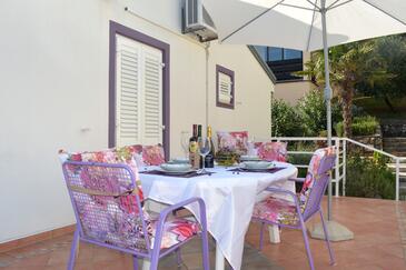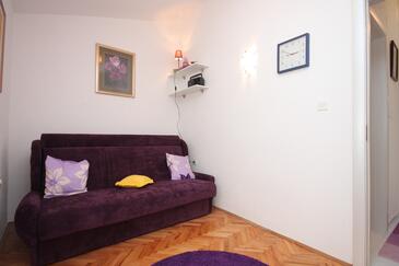 Ferienwohnung bietet Platz für 5 Gäste. Die Betten sind in Schlafzimmern, die es 1 gibt, und in Wohnzimmer, innerhalb einer Gesamtfläche von 37m2, angeordnet. Die Gäste haben eine eigene Terrasse zur Verfügung, auf der sie in warmen Sommernächten genießen können. Das Apartment bietet Meerblick. Es ist erlaubt, Speisen auf dem Gemeinschafts-Grill vorzubereiten.