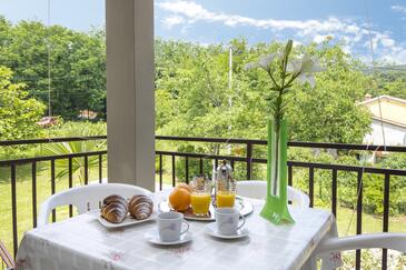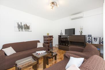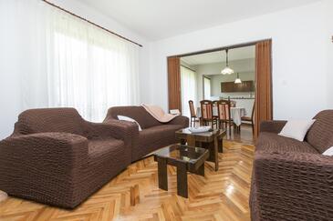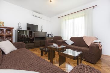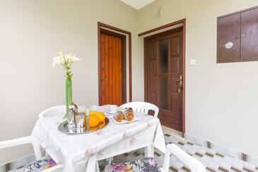 Ferienwohnung bietet Platz für 4 Gäste. Die Betten sind in Schlafzimmern, die es 2 gibt, innerhalb einer Gesamtfläche von 75m2, angeordnet. Die Gäste haben eine eigene Terrasse zur Verfügung, auf der sie in warmen Sommernächten genießen können. Es ist erlaubt, Speisen auf dem Gemeinschafts-Grill vorzubereiten.