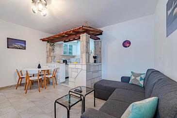 Ferienwohnung bietet Platz für 2 Gäste. Die Betten sind in Schlafzimmern, die es 1 gibt, innerhalb einer Gesamtfläche von 50m2, angeordnet. Die Gäste haben eine eigene Terrasse zur Verfügung, auf der sie in warmen Sommernächten genießen können. Das Apartment bietet Meerblick. Es ist erlaubt, Speisen auf dem Gemeinschafts-Grill vorzubereiten. In der Unterkunftseinheit besteht die Möglichkeit des Mitbringens von Haustieren gegen Aufpreis. Räume der gebuchten Unterkunftseinheit werden nicht in eine Ganze verbunden.