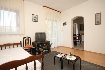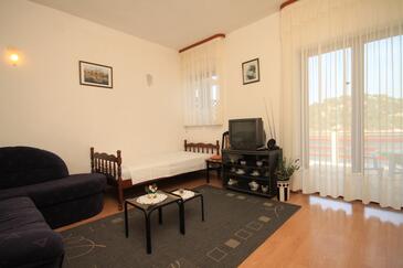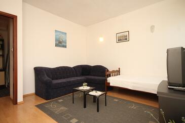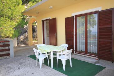 Ferienwohnung bietet Platz für 4 Gäste. Die Betten sind in Schlafzimmern, die es 1 gibt, und in Wohnzimmer, innerhalb einer Gesamtfläche von 43m2, angeordnet. Die Gäste haben eine eigene Terrasse zur Verfügung, auf der sie in warmen Sommernächten genießen können. Das Apartment bietet Meerblick. Es ist erlaubt, Speisen auf dem Gemeinschafts-Grill vorzubereiten.