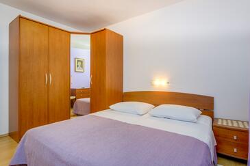 Ferienwohnung bietet Platz für 4 Gäste. Die Betten sind in Schlafzimmern, die es 2 gibt, innerhalb einer Gesamtfläche von 53m2, angeordnet. Die Gäste haben eine eigene Terrasse zur Verfügung, auf der sie in warmen Sommernächten genießen können. Es ist erlaubt, Speisen auf dem Gemeinschafts-Grill vorzubereiten.